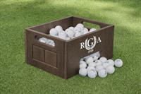 The full panel recycled plastic Superior Range Crate is the perfect option for distributing golf ball on your practice facility. -Logo options: routered, resin filled or acrylic dome -Holds approximately 185 range balls -Built in handles and steel trap door for easy transport -Angled interior floor distributes the balls out the front -8 in. H x 14 in. W x 11 in. D